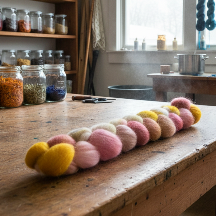 Hand dyed by Fibrehut in our Vale of Evesham studio. We dye with great care in small batches, using dyeing kettles and acid dyes.